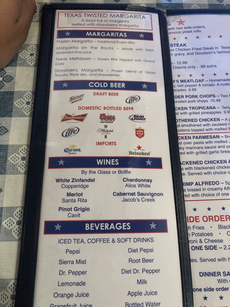 Goodson's Café, located in Tomball, TX, is a versatile American restaurant that also offers steakhouses and cafe options. This casual place is perfect for lunch or dinner, with a menu that caters to vegetarians and offers a variety of options for all. With amenities like takeout, delivery, and reservations, Goodson's Café ensures a convenient dining experience. The restaurant is wheelchair accessible, has private lot parking, outdoor seating, and even allows dogs. The full bar, TV, and Wi-Fi add to the inviting atmosphere, making it a great spot for groups or families. The extensive menu and attentive waiter service make dining at Goodson's Café a delightful experience worth trying.